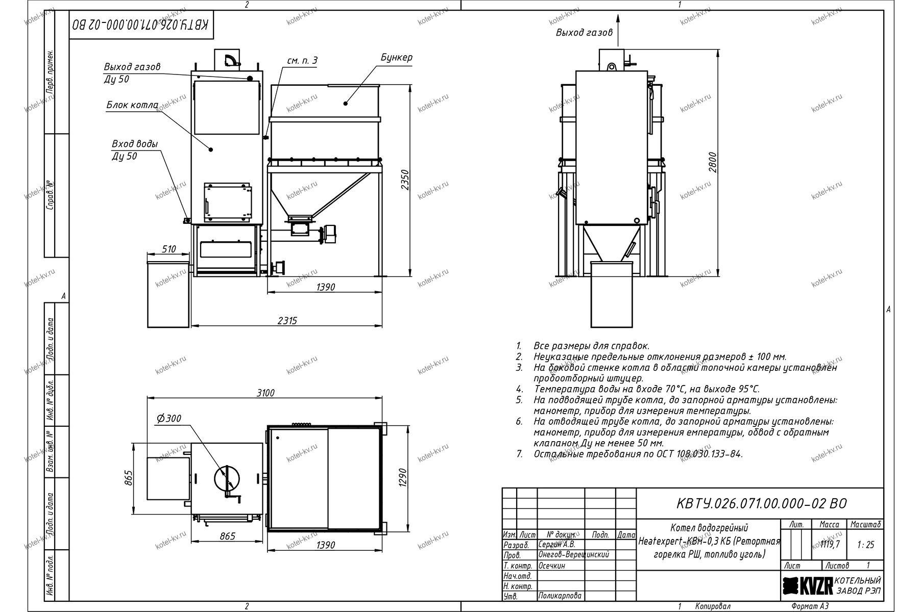 Конструкция автоматического котла на угле 0.3 МВт